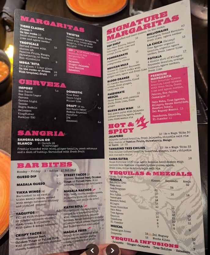 We had a good experience at Mama Tigre overall. The service was attentive and friendly, and the food was consistently good. We tried the lamb birria, queso masala, unlimited chips with salsa, paneer, chicken wings, and the guava drink—everything was flavorful and well prepared. We also celebrated my brother’s birthday here, and the staff made it fun with their signature celebration hat, which added a nice, festive touch to the experience. The guava drink was refreshing, portions were satisfying, and the menu offered a nice mix of options. Overall, a solid spot with good food and service, and we’d be happy to visit again. 🎉